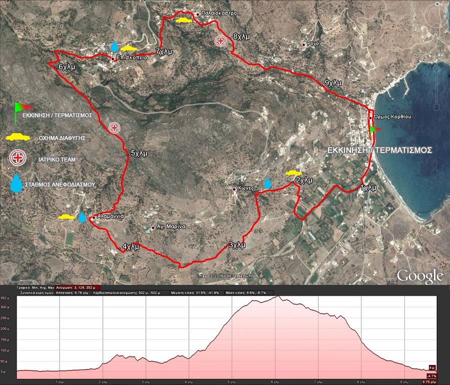 Η Μικρή Διαδρομή των 10χλμ του αγώνα με εκκίνηση από την πλατεία του Όρμου Κορθίου κατευθύνεται αρχικά προς τον κάμπο του Κορθίου, για να στρίψει προς τον οικισμό Κάτω Χώνες και την υπέροχη «κρήνη» του και από εκεί παράλληλα με τον Κάμπο, συναντώντας περιστεριώνες, σκαλαριά, αλώνια και κονάκια, να διασχίζει την Αλαμανιά, και να ανέβει προς το Επισκοπείο, αφού συναντήσει το εκκλησάκι του Πρ. Ηλία, τα πέτρινα ερείπια του Ταβλόμυλου και των Ανεμόμυλων. Το μονοπάτι κατευθύνεται προς το γραφικό πέτρινο γεφύρι και το νερόμυλο στο Επισκοπείο. Σήμα κατατεθέν του χωριού από τα γυρίσματα της ταινίας Μικρά Αγγλία. Η διαδρομή συνεχίζει μέσα από το χωριό για να διασχίσει και να περάσει τη Λαρδιά (Παλαιόκαστρο) και να καταλήξει και πάλι στον Όρμο Κορθίου.