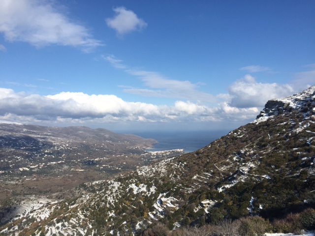 Χτεσινή φωτογραφία (9/1). Το χιόνι όπως φαίνεται το μεσημέρι είχε πια... αποσυρθεί στα ορεινά (φωτ. π. Φιλάρετος).