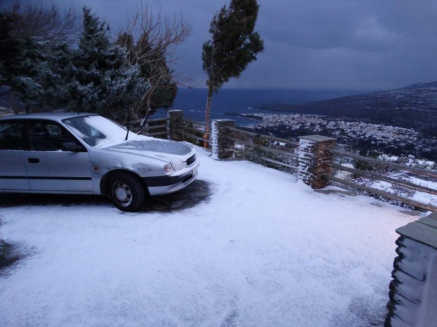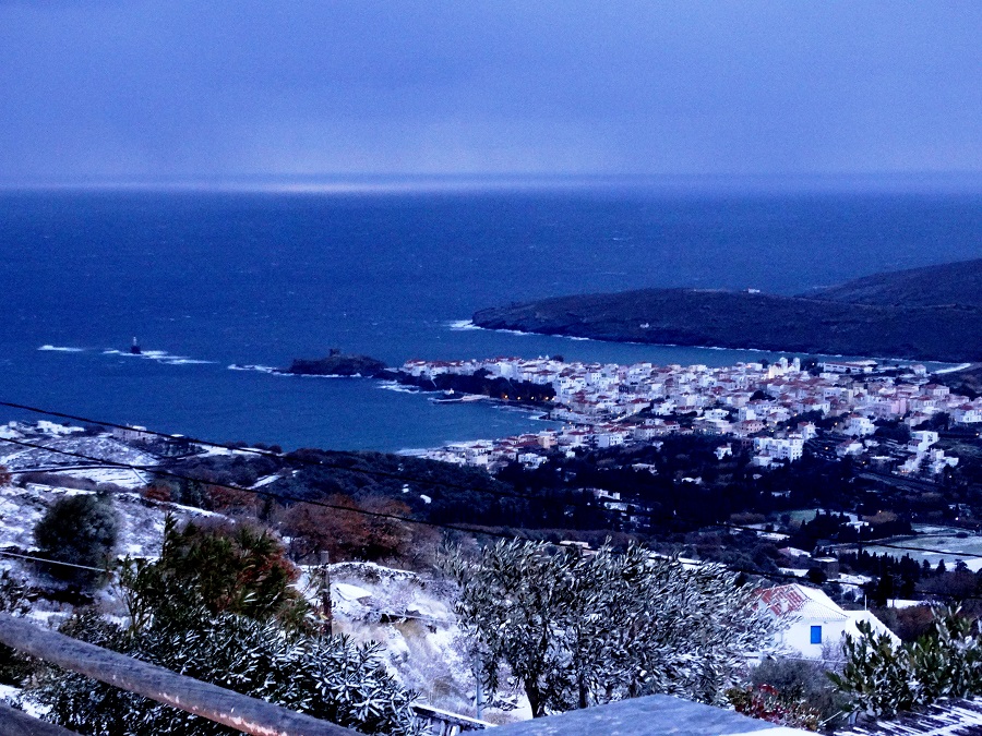 Τα πάντα κρυστάλωσαν σε μερικές περιοχές της Άνδρου (φωτ. π. Φιλάρετος).