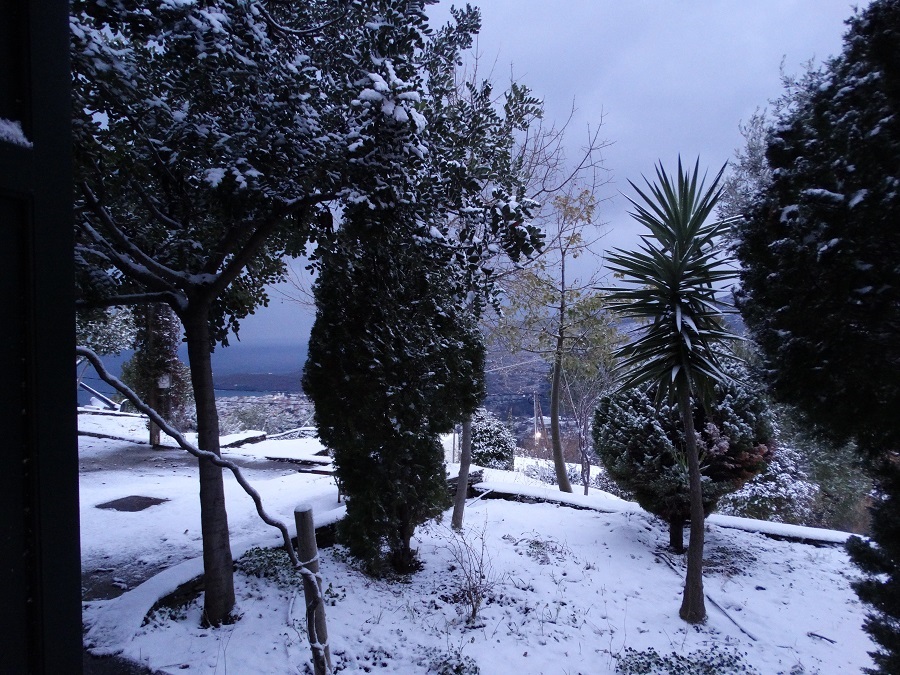 Εντάξει παιδιά το ‘στρωσε! Και το ‘στρωσε παντού! Ακόμα και στην αυλή μου! Στους 5 πόντους θα πείτε! Σωστά! Στους 5 πόντους! Τι είναι 5 πόντοι; Τίποτα. Απλώς τρέχεις να σηκώσεις τους καθαριστήρες μην κολλήσουν στο τζάμι. Μια περίεργη γλυκούρα παντού γύρω. Του χιονιού…
