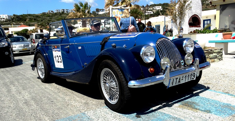 Μια Μόργκαν και μια Τζάγκιουαρ E Type διίπλα- δίπλα (φωτ. Εν Άνδρω).