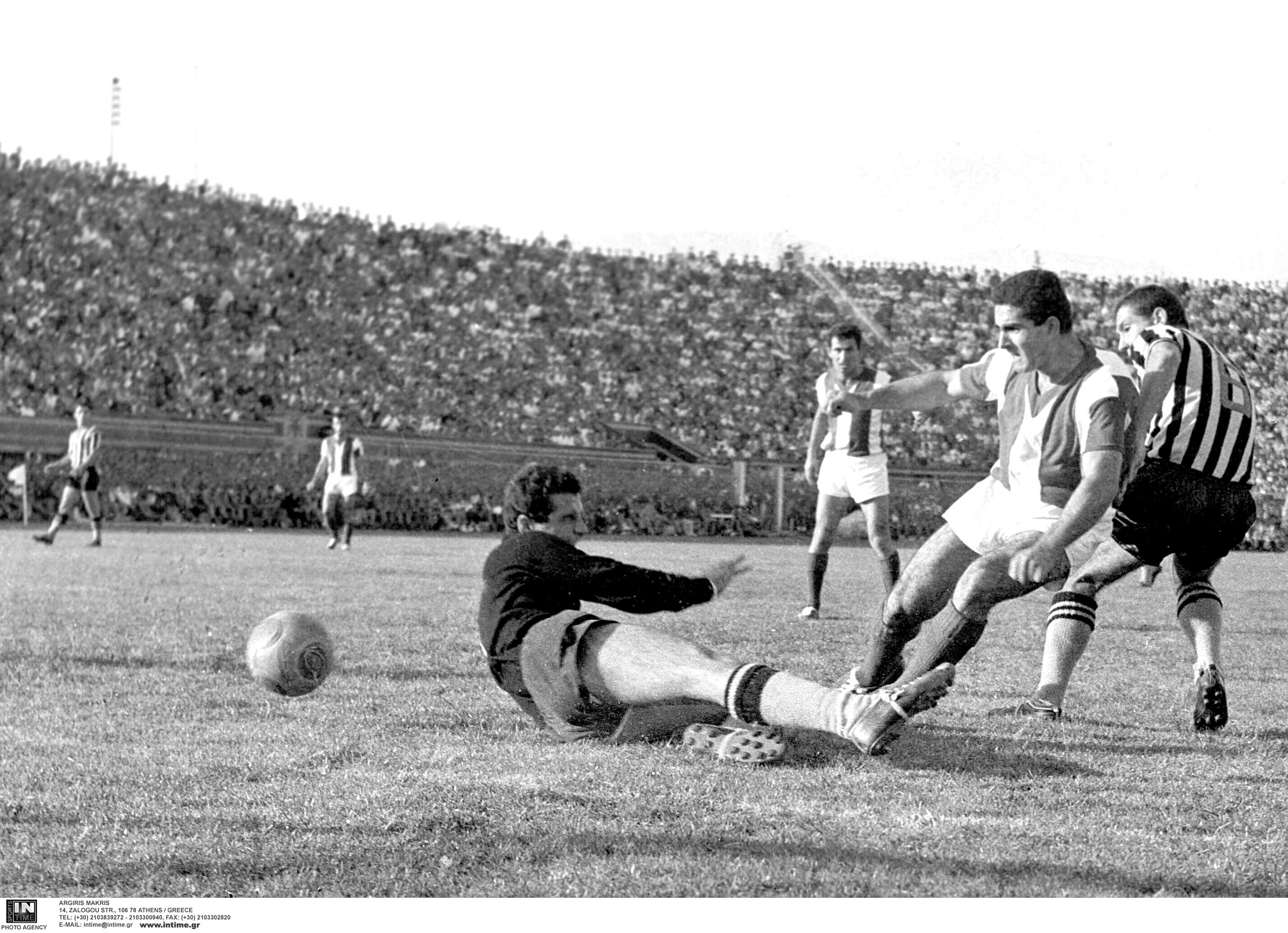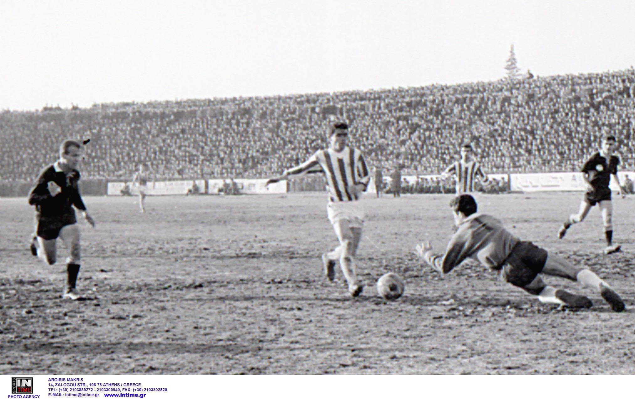 Ο Νίκος Γιούτσος επιχειρεί να βάλει γκολ - δεκαετία 1960