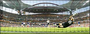 σε μια από τις θεαματικότερες αποκρούσεις όλων των εποχών, σε κεφαλιά του Πελέ,