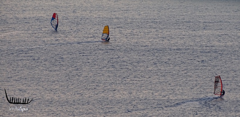 Περνώντας τυχαία ένα από τα εξαίσια βράδια αυτού του δύσκολου καλοκαιριού η θάλασσα στο Κυπρί είχε τρεις ιστιοπλόους που έκαναν ιστιοσανίδα μέχρι τις 19:30. Το θέαμα ήταν εξαιρετικό. Και η αίσθηση της καλοκαιρινής απόλαυσης δυνατή, καθώς άκουγες τον άνεμο στα πανιά των ιστιοσανίδων κι έβλεπες τις εξαιρετικές φιγούρες στη θάλασσα των αθλητών-επισκεπτών. Πόσο μάλλον για τους ίδιους...