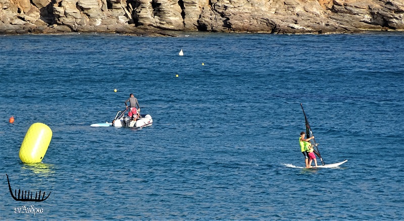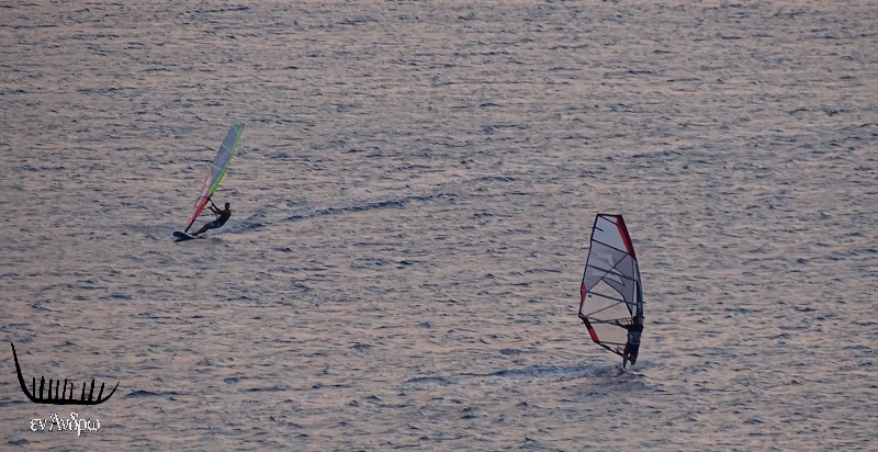 Πριν λίγες μέρες καθίσαμε ώρα πολύ και θαυμάζαμε τις ιστιοσανίδες με τους επισκέπτες και παραθεριστές που έκαναν ώρες θαλάσσια σπορ. Ήταν ένα πολύ ωραίο θέαμα.