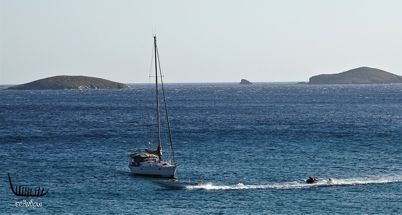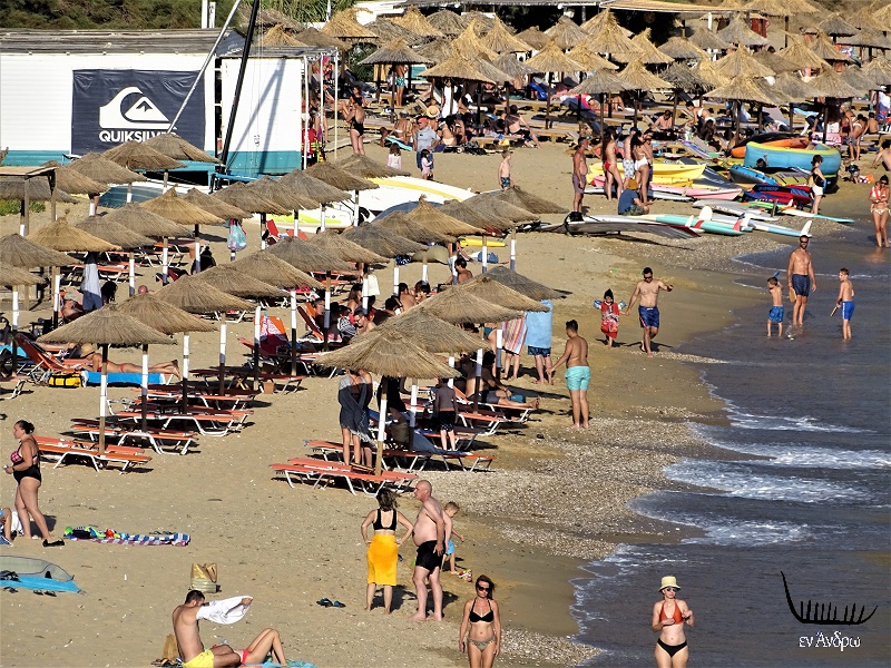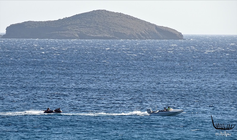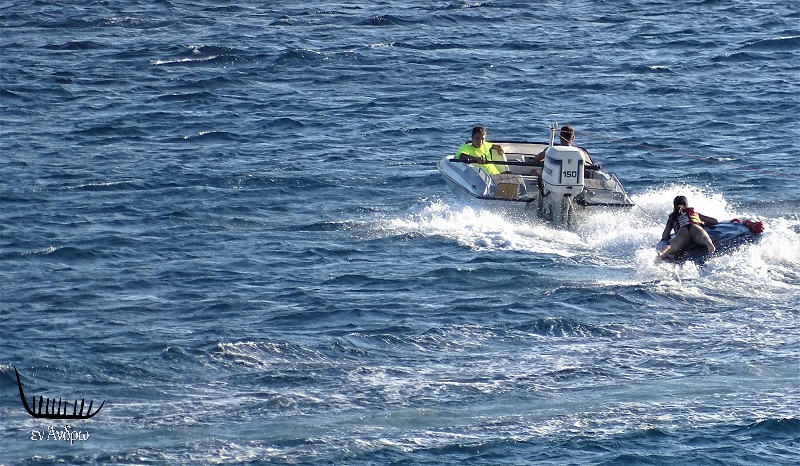 Εντυπωσιακό θέαμα και τα μηχανικά σπορ ψυχαγωγίας με κρις-κραφτ να σέρνουν με μεγάλες ταχύτητες επισκέπτες στον όρμο κάνοντας παιχνίδια με την θάλασσα...