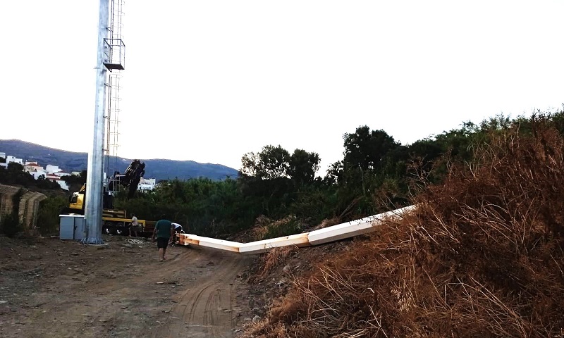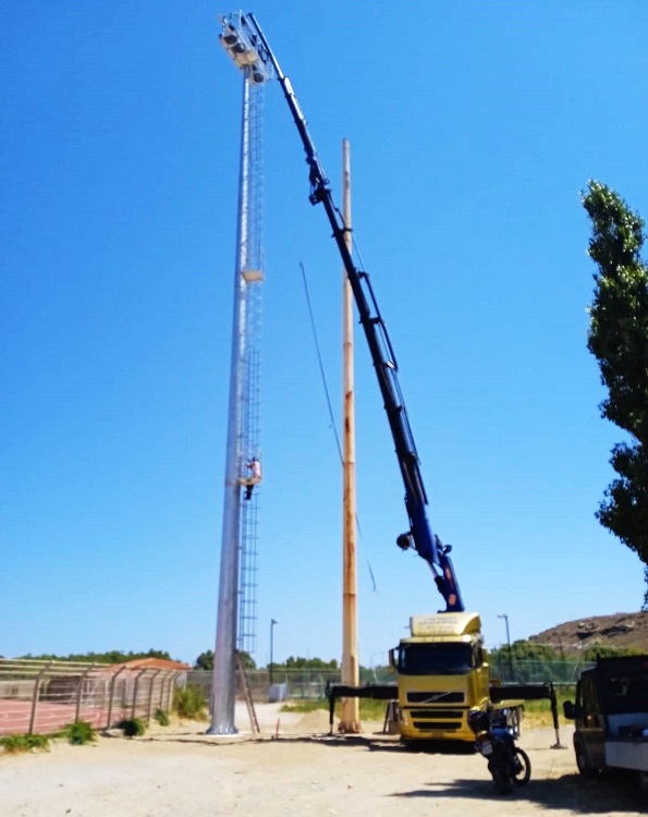 Ο νέος απαστράπτων πυλώνας φωτισμού στο υπό πλήρη ανακαίνιση Στάδιο της Άνδρου.
