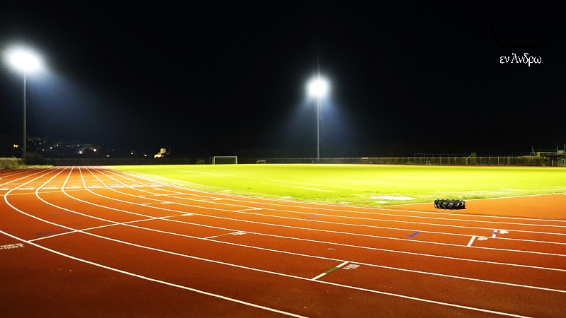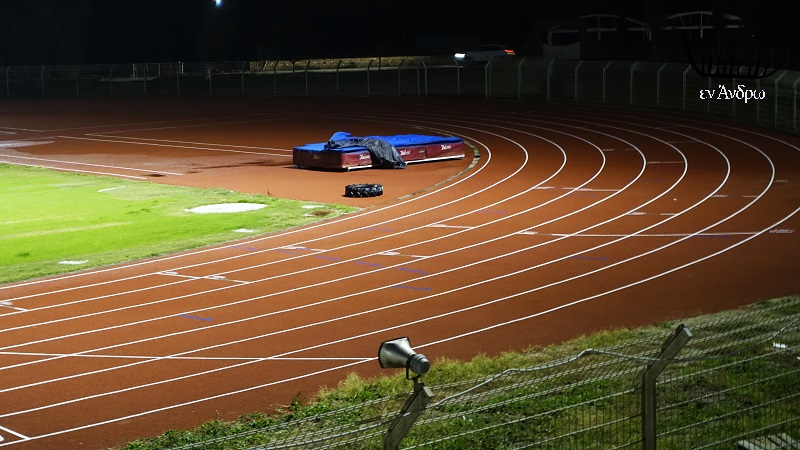 Το νέο ταρτάν στην στροφή του σταδίου της Άνδρου και ο χώρος των αθλημάτων.