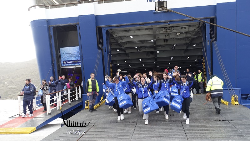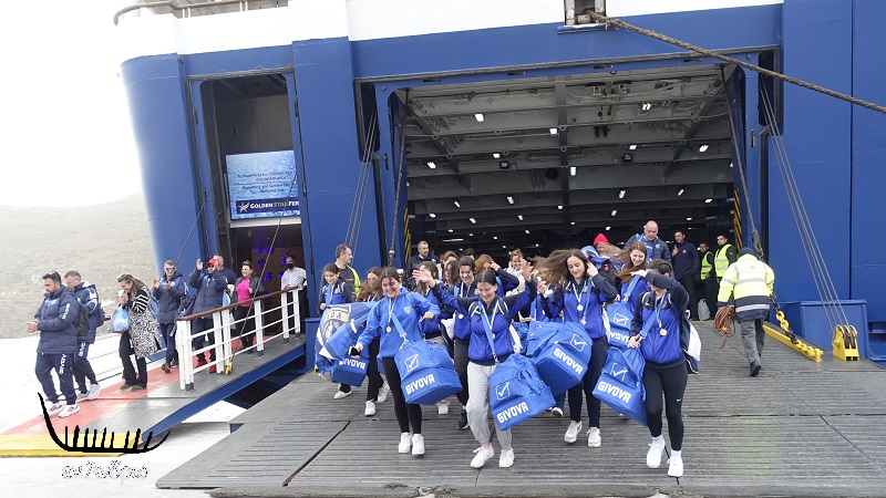 Κατέβηκαν όλες μαζί από τον καταπέλτη του πλοίου με το τρόπαιο των πρωταθλητών στα χέρια και όλες με ένα τεράστιο χαμόγελο γι΄ αυτό που πέτυχαν στην Πάρο.