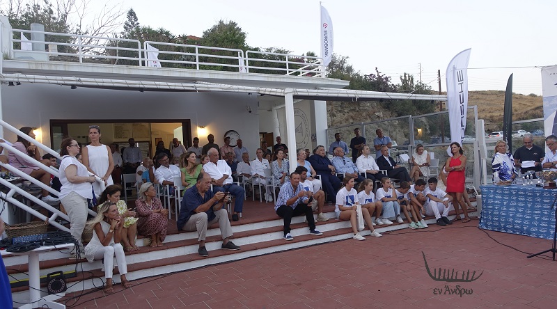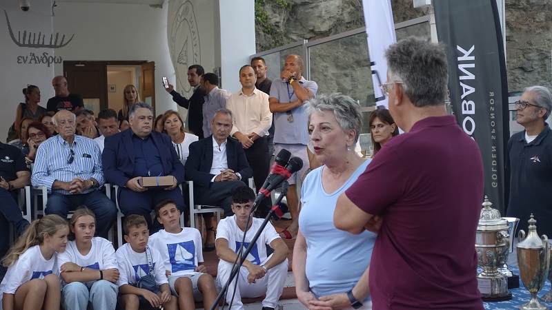 Παρουσία πολλών μελών του Ομίλου και αρκετών προσκεκλημένων έγινε η τελετή απονομής την οποία παρουσίασε με επιτυχία ο πρόεδρος του Ναυτικού Ομίλου Άνδρου Φαίδων Ταμβακάκης. Ο Ιστιοπλοϊκός Αγώνας της Άνδρου ήταν μια συνδιοργάνωση του Ναυτικού Ομίλου Άνδρου και της Ναυτικού Όμιλου Ελλάδος. Στην φωτογραφία η πρόεδρος της ΝΟΕ και ο πρόεδρος του ΝΟΑ καλησπερίζουν από κοινού τους προσκεκλημένους.