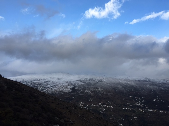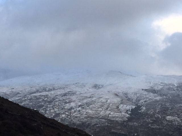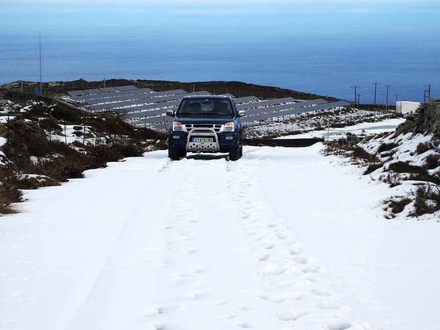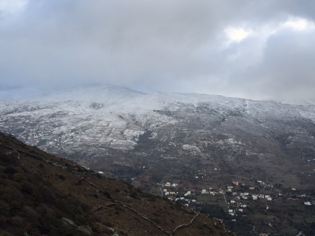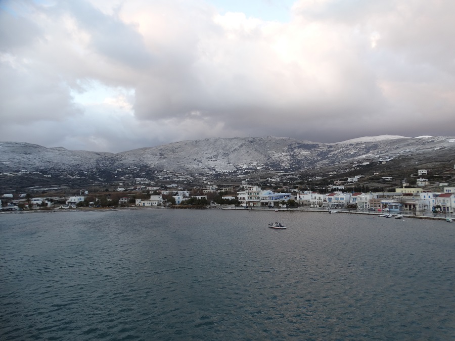 Το χιόνι κόπασε. Όμως τα βουνά γύρω από το Γαύριο είναι χιονισμένα. Άλλη μια φωτογραφία Κυριακή 8/1 στο ανεμοδαρμένο και λευκό Γαύριο... (φωτ. Εν Άνδρω).
