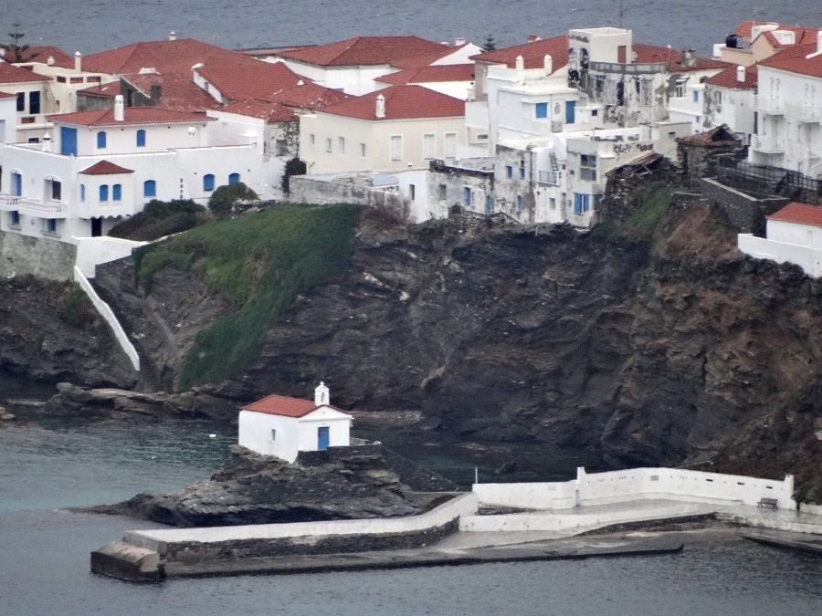Η Αγία Θαλασσινή μοναχική μέσα στην πρωινή βροχή ανήμερα των Θεοφανείων. Μια στιγμή στον χρόνο που περνά και χάνεται (φωτ. Εν Άνδρω).