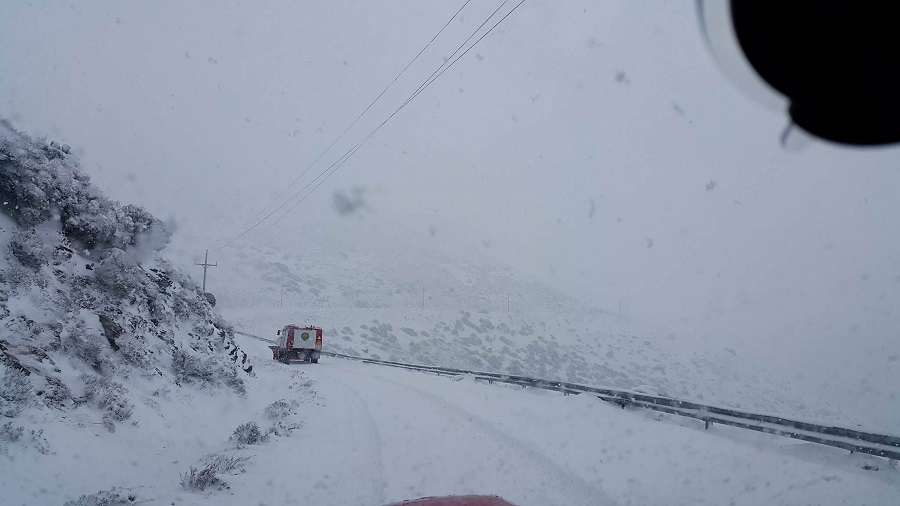 Και μια τρίτη φωτογραφία μαζί με την πληροφορία πως απόψε οι θερμοκρασίες στις 18:00 στους Γερακώνες, στο Βουνί, στο Κοχύλου, ήταν +1!!! Ευτυχώς ο δρόμος ήταν στεγνός. Φυσικά τη νυχτα θα κατέβει και άλλο... (φωτ. π. Φιλάρετος)
