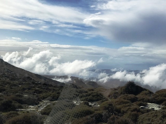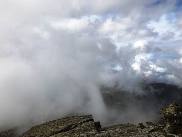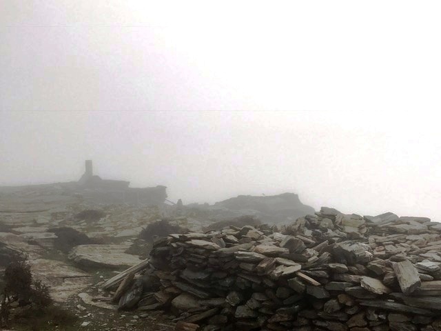 Και στο τέλος η κορυφή να φαντάζει κι αυτή έτσι αλλόκοτη και περίεργη μέσα στα σύννεφα που την κάλυπταν...
