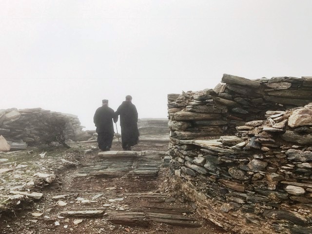 Με βροχή ανέβηκαν χτες το απομεσήμερο οι μοναχοί της Παναχράντου τον εντυπωσιακό δρόμο κι έφτασαν στους Άγιους Σαράντα - στην κορυφή της Κουβάρας. Ήταν ένα προσκύνημα παραμονή του εορτασμού του εξωκλησιού. Αλλά δεν ήταν μόνοι. Εκεί τους περίμενε ο παπά Γιιάννης, ο ιερέας της Άρνης!!!.