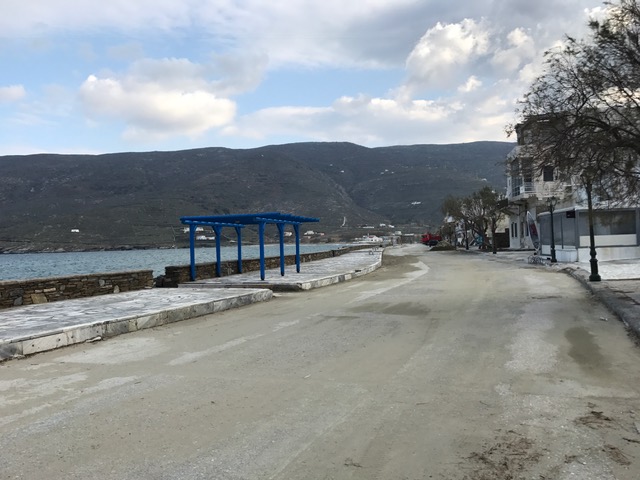 Υπάρχει όμως πάντα μια ομοιότητα: η ερημιά! Άδεια η παραλία στην καταιγίδα. Άδεια και στη νηνεμία. Παρά την έλευση του Μάρτη η εποχή δεν λέει να αλλάξει ακόμα. Έχουν μείνει στο νησί εκείνοι οι λίγοι που... το φυλάνε! "Είμαστε οι βατσιμάνιδες του τόπου" έλεγε για χρόνια ο "φευγάτος" πια γείτονας μου, ο κυρ-Μιχάλης Μ. (παλιός ναυτικός που έγινε ταβερνιάρης) όταν καθόμαστε τον χειμώνα στο μαγαζί του περιμένοντας το καλοκαίρι (φωτ. Χαρίδημος).