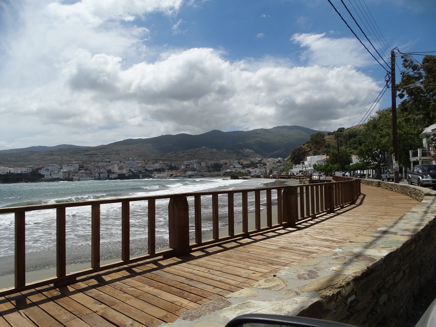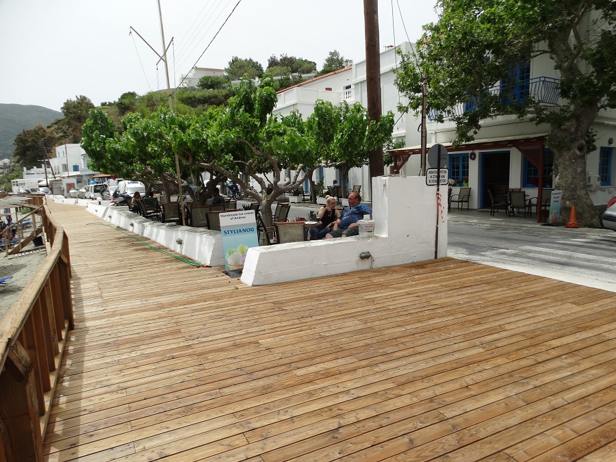 Μια νέα και φρεσκαρισμένη πεζογέφυρα θα υποδεχτεί τους επισκέπτες του καλοκαιριού στο Νειμποριό. Καθαρισμένη, σκουπισμένη, πλυμένη, φρεσκαρισμένη. Μια όμορφη πεζογέφυρα που απλώνει μπροστά στη θάλασσα και στα κύματα. Μπροστά στα καφέ μιας παραλίας που πριν μερικά χρόνια υπέφεραν από την άμμο, την δυσκολία της κίνησης στον δρόμο κλπ. Σήμερα οι μεν περιπατητές της παραλίας απέκτησαν ζωτικό χώρο τα δε μαγαζιά, όπως το ουζερί του Στυλιανού κάτω από τον πλάτανο και τις μουριές (φωτογραφία) ή και το καφέ-μπαρ Swell του Γιάννη Χαλά, απέκτησαν ζωτικό περίγυρο... (φωτ. Εν Άνδρω).