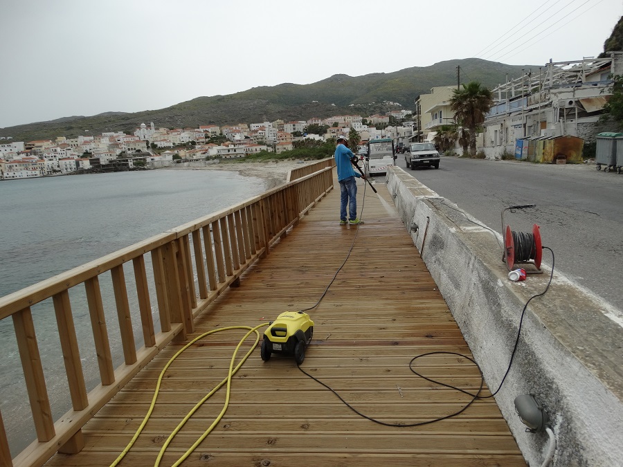 Στιγμιότυπο από τον καθαρισμό και το πλύσιμο πριν το βάψιμο μπροστά στο Swell (φωτ. Εν Άνδρω).