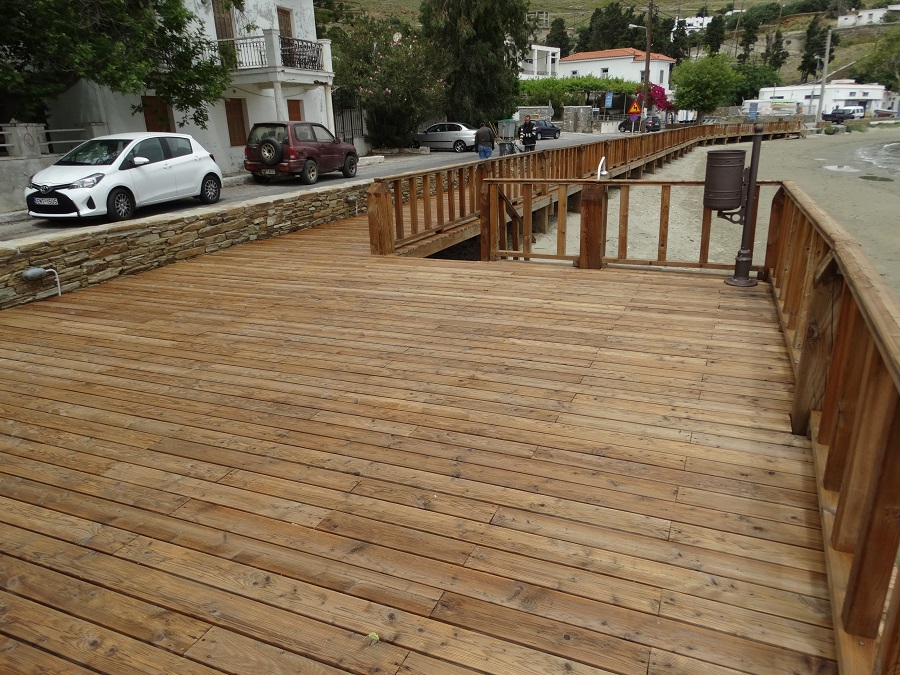 Πλέον η πεζογέφυρα έτοιμη και φρεσκαρισμένη περιμένει τους καλοκαιρινούς επισκέπτες του Νειμποριού (φωτ. Εν Άνδρω).