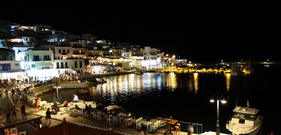 Μια τελευταία ματιά στο νυχτερινό Μπατσί από την "Μπούκα". Η νύχτα με το δικό της χρώμα αναδεικνύει ότι φωτίζει και δημιουργεί το μαγικό χρώμα ενός σκηνικού μοναδικού (φωτ. Εν Άνδρω).