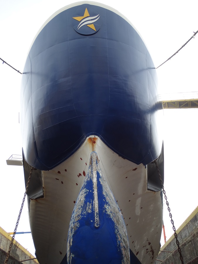 Μετά από μια σύντομη πρωινή συζήτηση με τον Γιώργο Στεφάνου με θεμα για το πότε θα μπει στην γραμμή το νεό SuperFerry σκέφτηκαμε πως δεν είχαμε δημοσιεύσει μερικές εντυπωσιακές φωτογραφίες από τα ύφαλά του όταν ήταν στη δεξαμενή Βασιλειάδη πριν ένα μήνα. Μιας και δεν υπάρχει ακόμα υπεύθυνα ημερομηνία που θα μπει στη γραμμή μας το πλοίο βρήκαμε τις φωτογραφίες και τις παρουσιάζουμε εδώ.