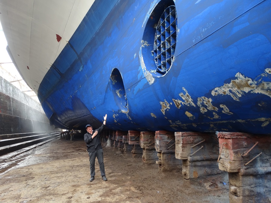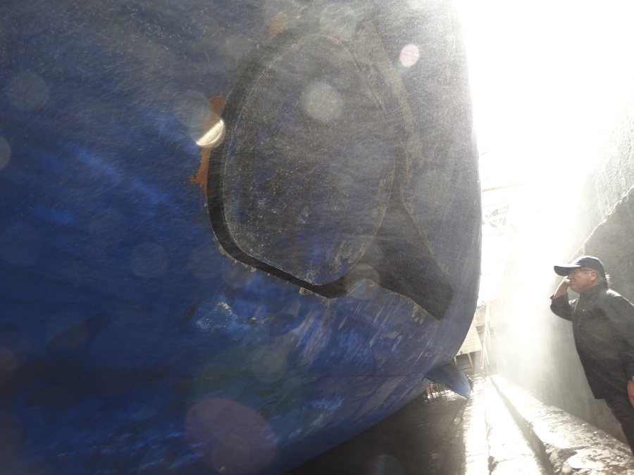 Είναι μια "κατάδυση" στα ύφαλα του πλοίου κατά την διάρκεια που γινόταν ο καθαρισμός τους και μετά θα ακολουθούσε το βάψιμο ώστε να αντέξει στον χρόνο και στην θάλασσα. Την "κατάδυση" την πρότεινε ο Γιώργος Στεφάνου και την αποδεχτήκαμε με ευχαρίστηση μιας και δεν έχεις πάντα την ευκαιρία να δεις τα ύφαλα του πλοίου που θα ταξιδεύεις μαζι του σε λίγες μέρες. Κατεβήκαμε τις σκάλες της παλιάς πέτρινης δεξαμενής και κάναμε μια μεγάλη βόλτα για εμάς, αλλά και για εσάς που μας διαβάζετε και βλέπετε τις φωτογραφίες αυτές σήμερα παρέα μας.