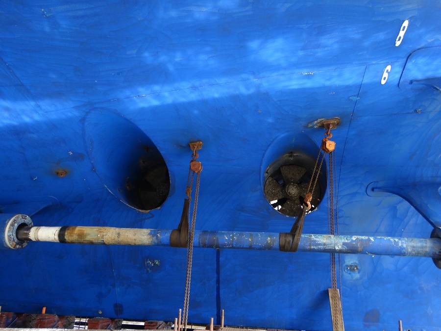 Τα ακούμε, τα βλέπουμε που σπρώχνουν το καράβι. Όμως μάλλον δεν τα έχουμε δει ποτέ. Τα δύο πλαϊνά προπελάκια λίγο πριν βγουν και καθαριστούν (Φωτο: Εν Άνδρω).