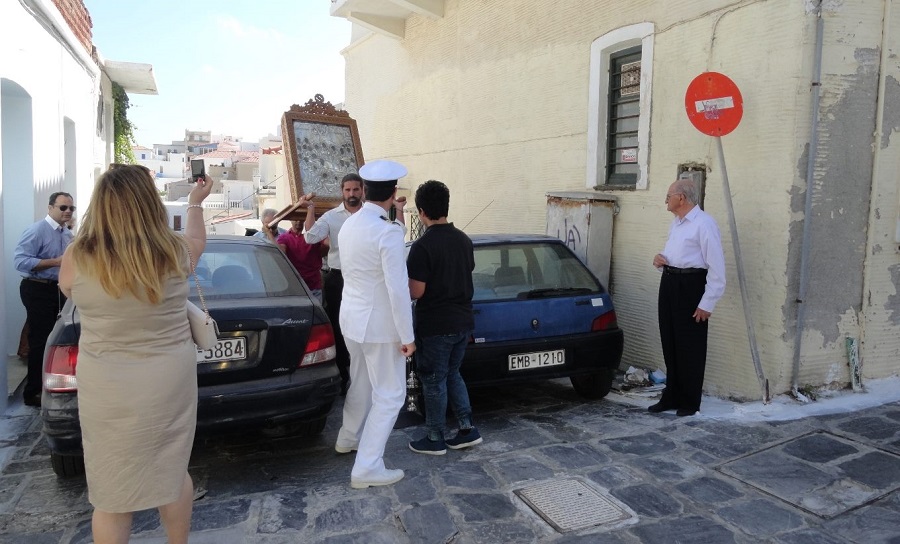 Όχι ακριβώς. Όπως δείχνει η φωτογραφία που μας έστειλε ο Μανώλης Μακρογκίκας σε μερικά σημεία τα παρκαρισμένα αυτοκίνητα έκαναν αυτά παρέλαση!!! Και εμπόδιζαν την περιφορά σε τέτοιο σημείο που χρειάστηκε να γίνουν ταρζανιές για να περάσει η εικόνα. Κάτι που δεν μας τιμά.