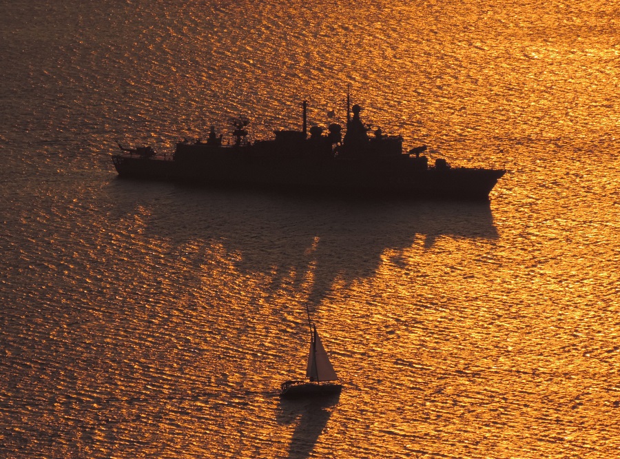 Απροβάτου: η θάλασσα και τα πλοία στο δειλινό