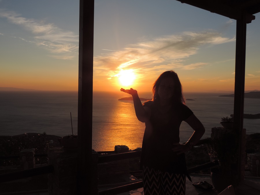 Γωνίες της Άνδρου, ηλιοβασίλεμα ψηλά από το Απροβάτου, η φρεγάτα, μια βάρκα, ένα ιστιοφόρο, μια κοπέλα που παίζει με τον ήλιο που αργοσβήνει στον ορίζοντα. Μοναδικά ενσταντανέ, γεμάτα ευαισθησία και συναίσθημα, από μια Άνδρο που «ταξιδεύει» τα φθινοπωρινά απόβραδα.