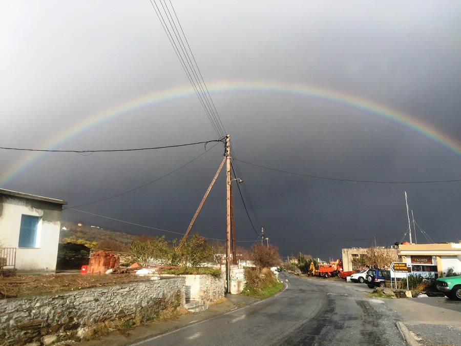 Κι ήταν ένα τόσο μεγάλο κι επιβλητικό ουράνιο τόξο αυτό που βγήκε στα διάκενα της καταιγίδας πάνω από την κοιλάδα της Χώρας... (φωτ. π. Φιλάρετος)