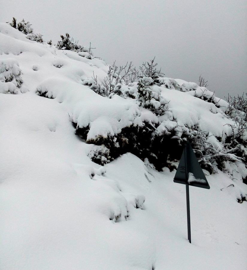 Η χωμένη στο χιόνι πινακίδα βοηθά να καταλάβουμε το ύψος τους χιονιού που έχει ξεπεράσει τους 60-70 πόντους (φωτ. Η. Μπλάνας).