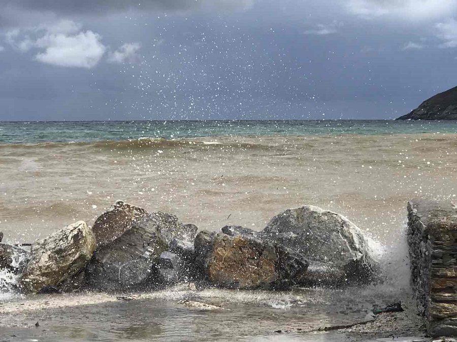 Άλλη μια φωτογραφία στον Όρμο που μπορεί κανείς να δει την καφετιά θάλασσα (!!!) και τα κύματα να σπάνε στα βράχια και στο πέτρινο τοίχο... (φωτ. Χαρίδημος).