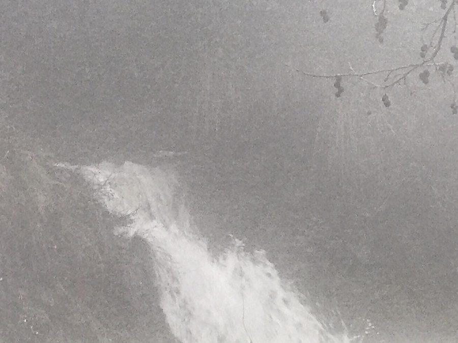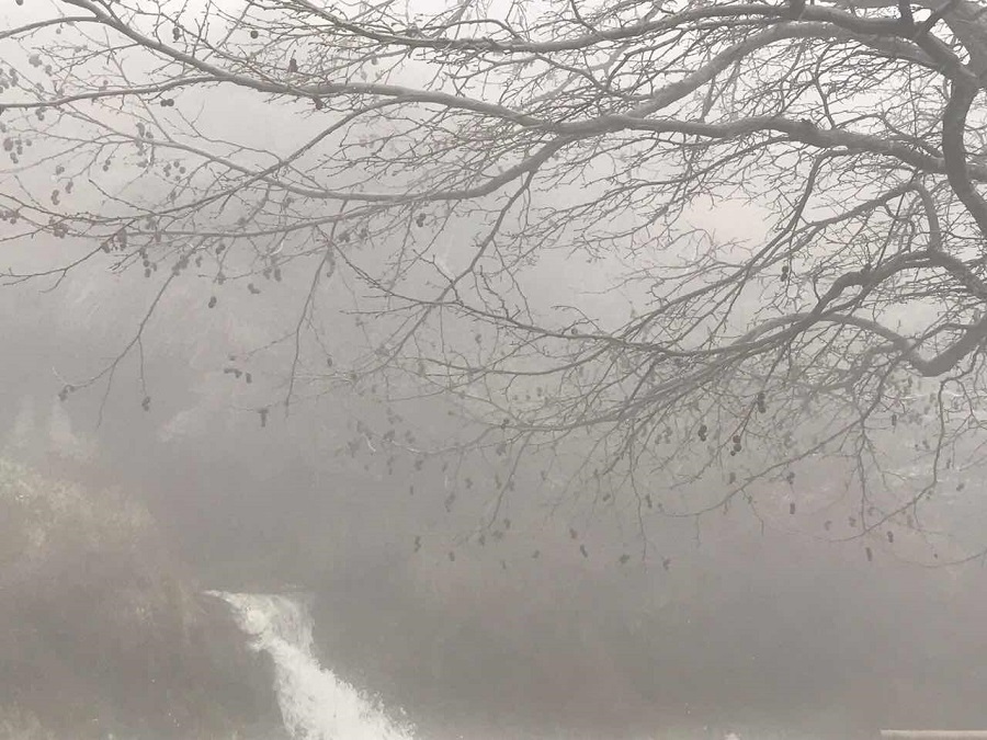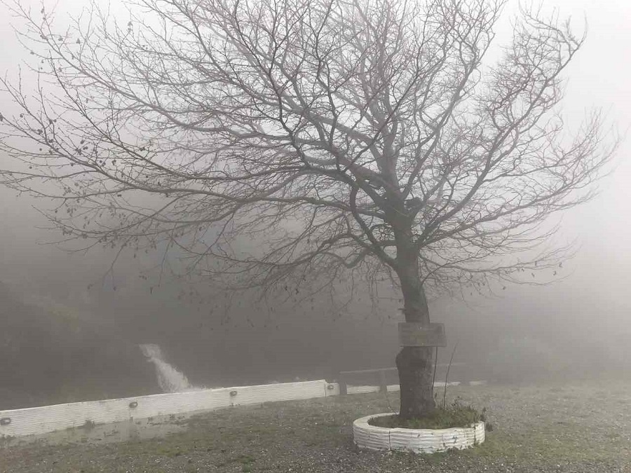 Μια τελευταία εικόνα από την σημερινή καταιγίδα. Δεν είναι πίνακας από αγγλικό τοπίο. Είναι μια στιγμή στον χρόνο μόλις λίγα μέτρα πιο πάνω από το μοναστήρι της Παναχράντου. Διακρίνεται πάλι ο καταρράκτης και το φύλωμα του δέντρου μέσα στην ομίχλη και στην βροχή... (φωτ. Χαρίδημος).