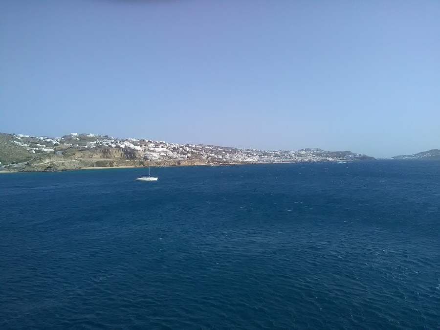 Το ελαφρό βοριαδάκι του σημερινού απογεύματος έβγαλε στο πέλαγος πολλά ιστιοπλοϊκά. Ένα από αυτά αποπλέει από την Μύκονο συνεχίζοντας το ταξίδι στα μοναδικά ελληνικά νερά…