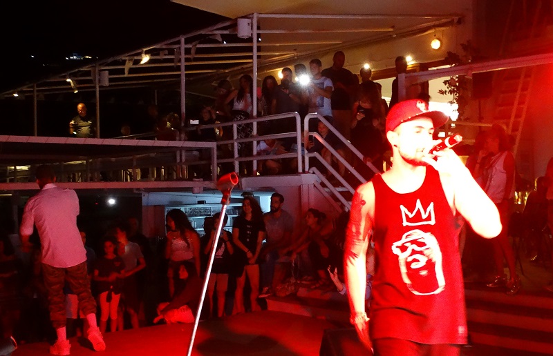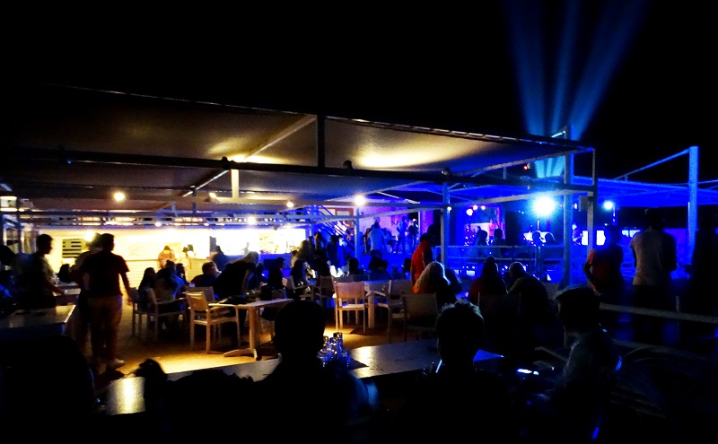 Πίσω όμως υπήρχαν και μεγαλύτεροι που έπιναν το ποτό τους και παρακολουθούσαν το συγκρότημα να "ραπάρει"... (φωτ. Εν Άνδρω).
