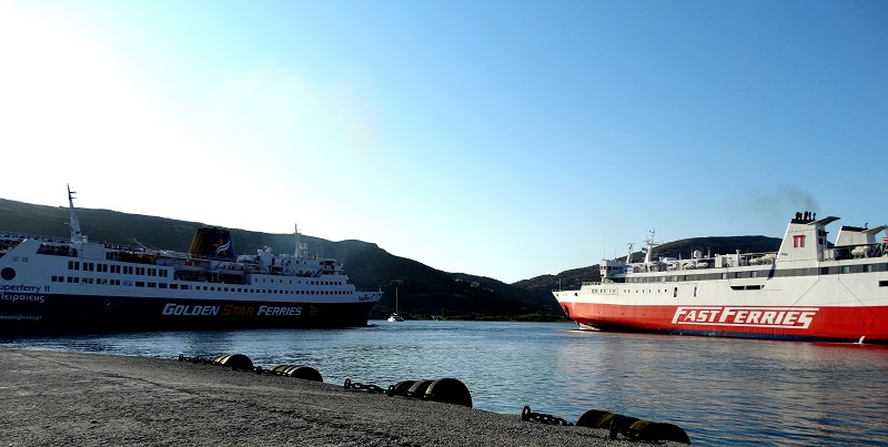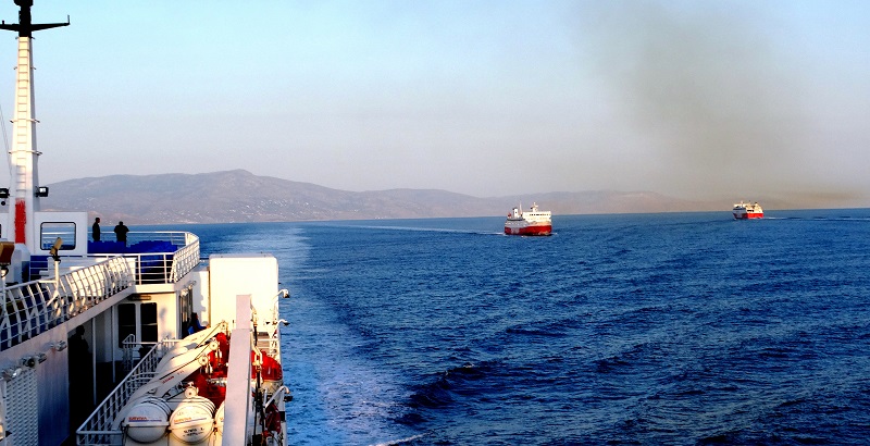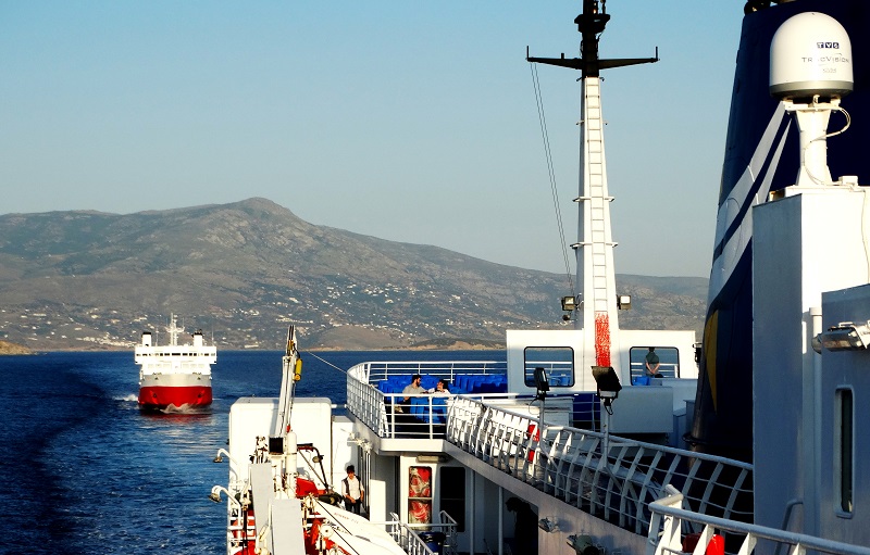 Το πλοίο περνά τους Πεταλιούς και τραβά γραμμή προς τη δύση. Μερικοί λοξοκοιτάνε τα Superferry που πλέον μάς συνδέουν μια φορά την μέρα (αλέ-ρετούρ) με Ραφηνα. Το ένα περνά πρωί, το άλλο αργά το απόγευμα. Δεν βλέπουν πως μάς συνδέουν με τις κεντρικές και νότιες Κυκλάδες και την Κρτη. Πως ταξιδεύουν την Άνδρο στο Αιγαίο...  (φωτ. Εν Άνδρω).