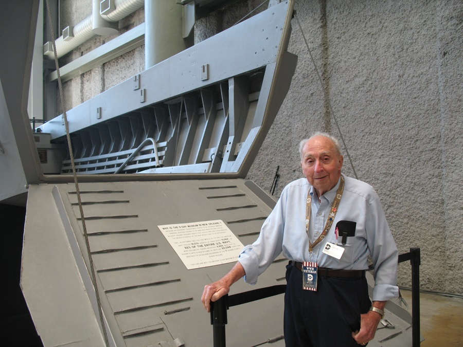 Ο ηλικιωμένος άνδρας είναι ένας από αυτούς τους 30.000 εργαζόμενους που έφτιαξαν τα πλοιάρια της D-DAY στη Νέα Ορλεάνη. Έκανε εθελοντικά τον ξεναγό την ημέρα που επισκεφθήκαμε το μουσείο σε όσους ρωτούσαμε και τα περιεργαζόμαστε.