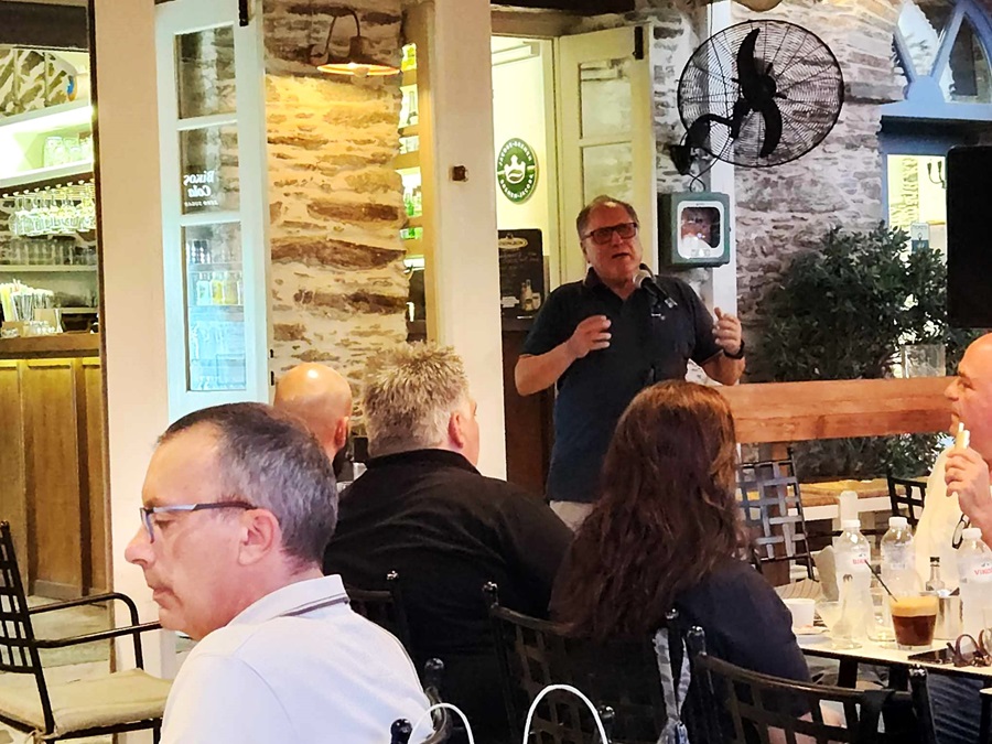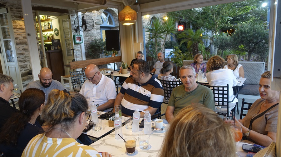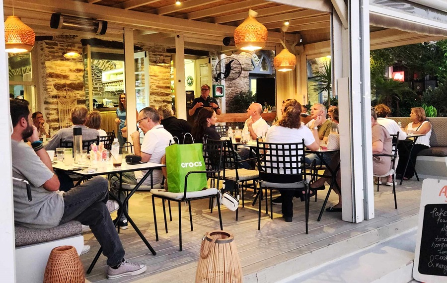 Να ευχαριστήσουμε τον Βασίλη Μπατή και το Λάας, που είχαν την πρωτοβουλία μιας παρουσίασης εκτός σεζόν. Να σημειώσουμε ιδιαίτερα την παρουσία όλων των πρακτόρων του λιμανιού: ο Πέτρος, ο Φραντζέσκος, ο Γιώργος. Αλλά και την έκπληξη της βραδιάς: την παρουσία του πρόεδρου του Ναυτικού Ομίλου Άνδρου Φαίδωνα Ταμβακάκη. Κάποτε συνοδοιπορήσαμε στο εκλεκτό ελληνικό περιοδικό των γραμμάτων και του πολιτισμού Διαβάζω. Ήταν ιδιαίτερη η συγκίνηση που τον είδαμε εκεί με όλη την παρέα του.