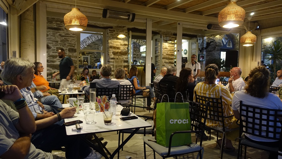 Να ευχαριστήσουμε όλους τους προσελθόντες. Αυτούς που γνωρίζαμε, αλλά κι αυτούς που δεν γνωρίζαμε. Όπως π.χ. την Κορίνα και την παρέα της από το Φελλό ή τον Λεωνίδα Λάβδα, που η ιστορία του πατέρα του περιλαμβάνεται στο βιβλίο. Να ευχαριστήσουμε την Ηλέκτρα Καράγιωργα (φωτογραφίες) και το Νίκο Κατσίκη (ήχο). Και να προσθέσουμε το πιο σημαντικό: ήταν μια παρουσίαση εκτός σεζόν. Άρα ήταν και μια "αναμέτρηση" με τους εναπομείναντες του νησιού. Αυτούς που αγαπούν την ιστορία του νησιού. Φυσικά όλοι - αν και Παρασκευή βράδυ - βρήκαν πάρκινγκ εύκολα! Γιατί έχουν φύγει πια οι επισκέπτες των αυγουστιάτικων φεγγαριών! Πήγαν για άλλες πολιτείες: αναρχικές, εξωτερικές, βορειοπροαστιακές, βιοποριστικές κλπ.