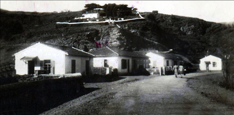 Προπολεμική φωτογραφία του Συνοικισμού στη Χώρα της Άνδρου. Τα σπίτια του Συνοικισμού - όπως φαίνεται - ήταν μικρά με κεραμοσκεπή.