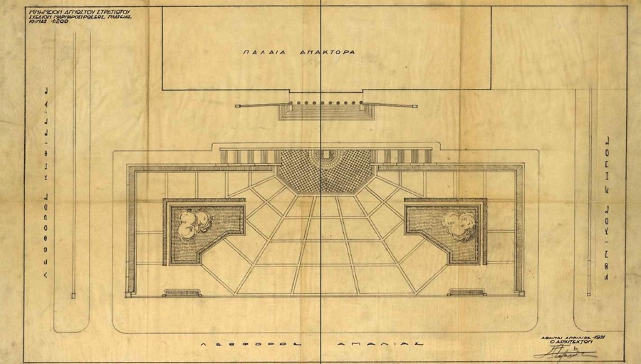 Η πρωτοβουλία ανήκε στον υπουργό Στρατιωτικών Θεόδωρο Πάγκαλο και η προκήρυξη του διαγωνισμού δημοσιεύτηκε στην Εφημερίδα της Κυβερνήσεως της 28ης Φεβρουαρίου 1926 κι έφερε την υπογραφή του υφυπουργού Στρατιωτικών. Κωνσταντίνου Νίδερ. Τον διαγωνισμό κέρδισε στις 9 Οκτωβρίου ο αρχιτέκτονας Εμμανουήλ Λαζαρίδης, ο οποίος υπέβαλε τη μελέτη του με το ψευδώνυμο ΣΚΡΑ.