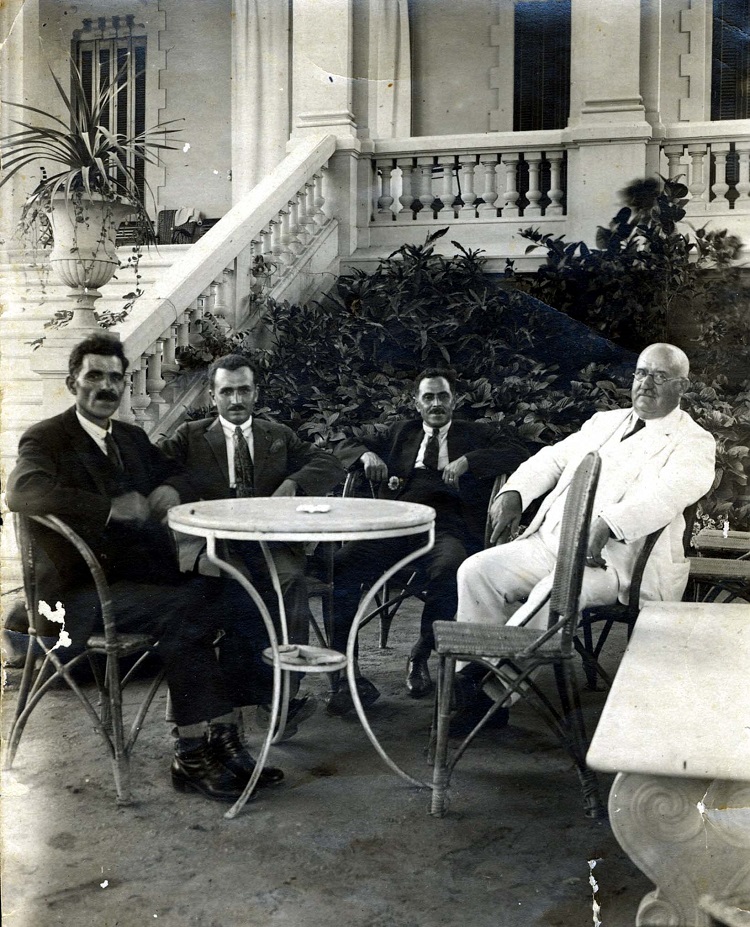 Από αριστερά προς δεξιά: Νικόλαος Ανδρέου, Γιαννούλης Βρατσάνος, Δημήτριος Ανδρέου & Ιωάννης Αθηναίος. Κατά την επίσκεψη τους στην οικία του Ιωάννη Αθηναίου στην Αλεξάνδρεια της Αιγύπτου.