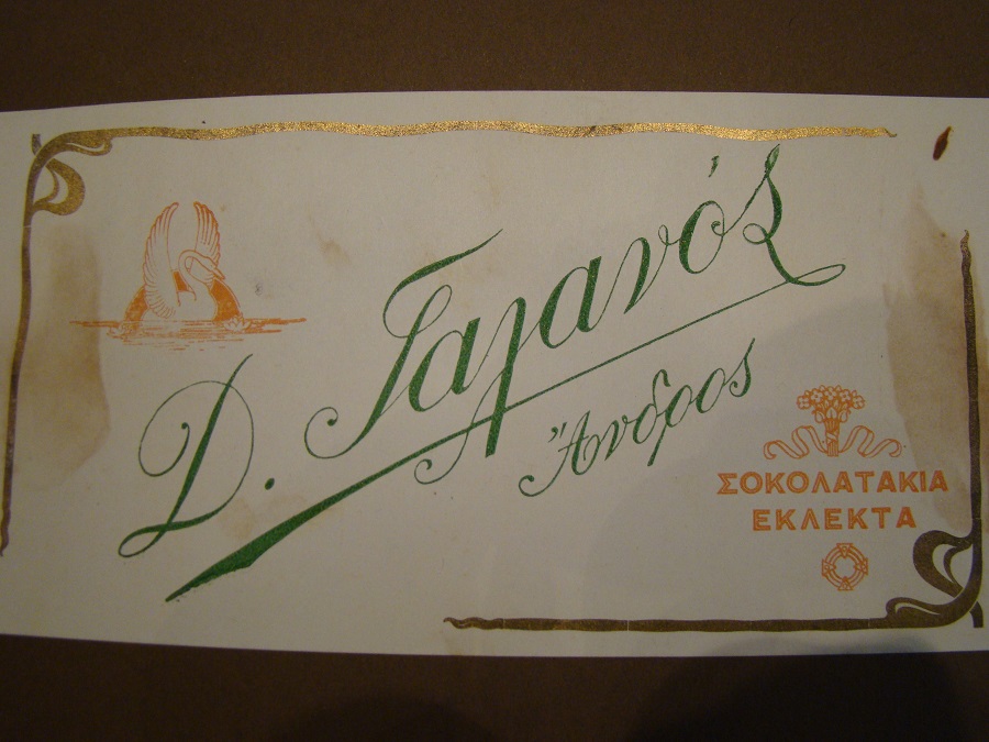 Διαφημιστικό του ζαχαροπλαστείου Δ. Γαλανού από το τυπογραφείο Πολέμη (φωτ. Εν Άνδρω).