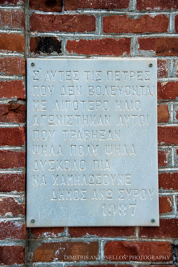 Δεξιά μια μαρμάρινη- μεταγενέστερη- επιγραφή με τα λόγια του Ρίτσου σου δημιουργεί ένα σφίξιμο.