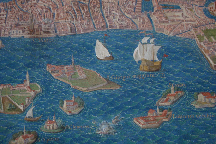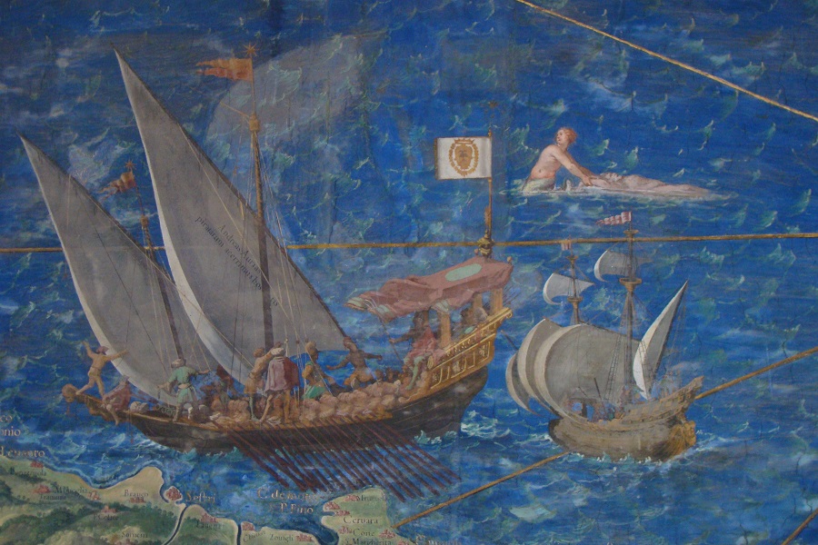 Οι τοιχογραφίες με τις θαλασσογραφίες είναι από το Βατικανό αναπαριστούν πλοία της εποχής της Βενετικής εξάπλωσης (φωτο¨Εν Άνδρω). Οι φωτογραφίες της Άνδρου είναι του "Εν Άνδρω" και έχουν παρθεί γύρω από το Πάνω Κάστρο που έχτισαν οι Βενετοί και οι Φράγκοι τις πρώτες δεκαετίες του 13ου αιώνα.