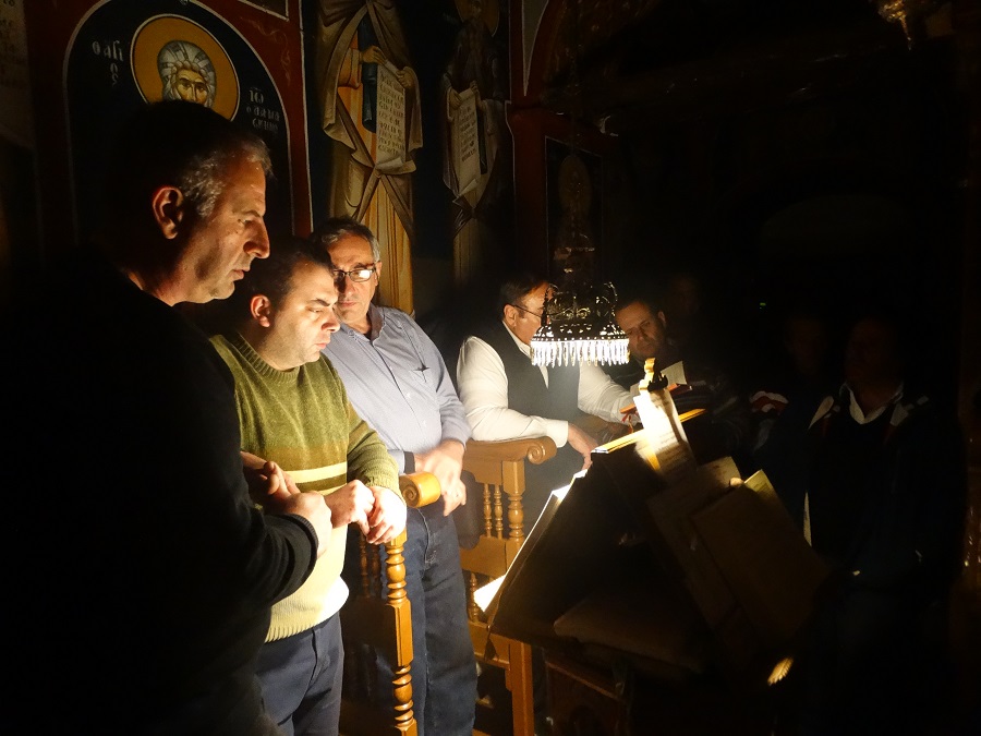 Πρώτος αριστερά στο ψαλτήρι ο γιος του Θεοχάρη Σπυριδάκη.