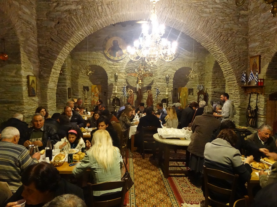Η βραδιά έκλεισε με μνήμη και περίσκεψη, σε ένα ανοιχτό δείπνο στην τραπεζαρία της Μονής στο οποίο, παρά το προχωρημένο της ώρας παραβρέθηκαν περίπου 100 άτομα.