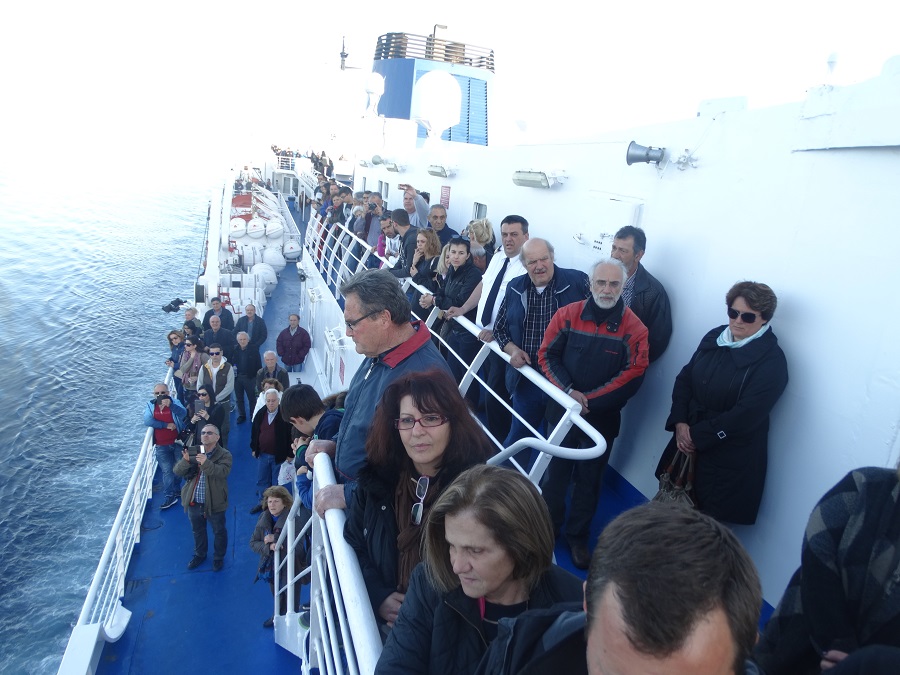 Άλλη μια σκηνή του "χορού αρχαίας τραγωδίας", ενός ρόλου που ανέλαβαν μόνοι τους οι εκατοντάδες βουβοί επιβάτες, απλώνοντας σε όλη την δεξιά πλευρά του πλοίου...