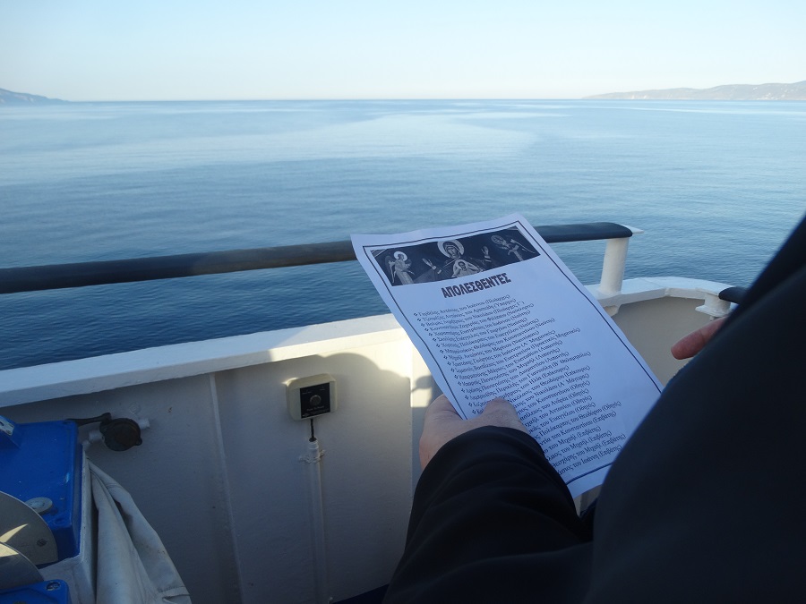 Ο καπετάν Τάσος ανακοινώνει το στίγμα του πλοίου και το τρισάγιο....